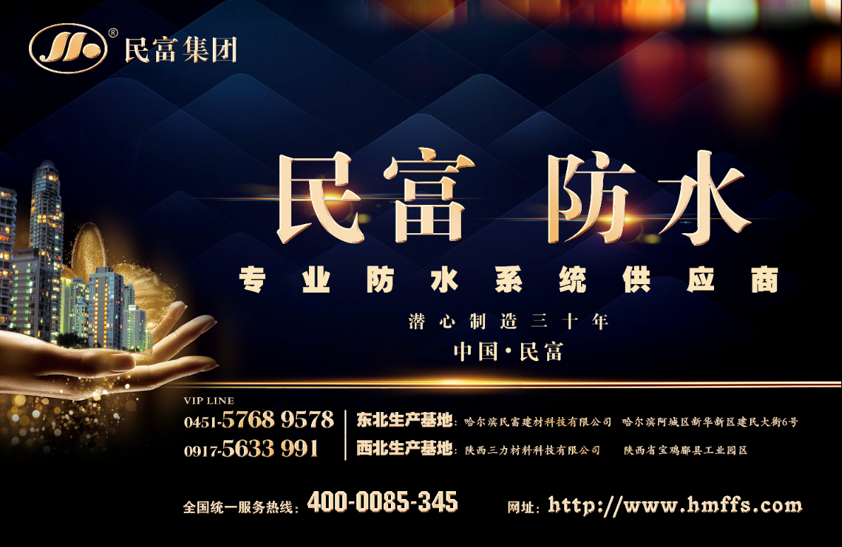 民富集團(tuán)始創(chuàng)于20世紀(jì)90年代,近三十年間,為重大基礎(chǔ)設(shè)施建設(shè)、工業(yè)建筑和民用、商用建筑提供高品質(zhì)、完備的防水系統(tǒng)服務(wù)。民富集團(tuán)主營(yíng)高品質(zhì)防水系列產(chǎn)品及外加劑系列產(chǎn)品,是一家集建筑防水材料研發(fā)、制造、銷售、技術(shù)服務(wù)和防水工程施工于一體的高新技術(shù)企業(yè),是一家既生產(chǎn)防水建材產(chǎn)品又具有國(guó)家專業(yè)防水施工的企業(yè)(具備國(guó)家貳級(jí)建筑防水資質(zhì))。民富集團(tuán)于2018年構(gòu)建的全國(guó)東北、西北兩個(gè)市場(chǎng)布局初步完成,東北生產(chǎn)基地以哈爾濱民富建材科技有限公司為核心,西北生產(chǎn)基地以新投產(chǎn)的陜西三力材料科技有限公司為核心。